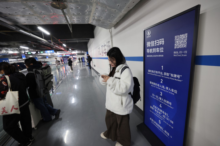 乘坐网约车的旅客通过微信扫码可以直接导航到车位。新京报记者王贵彬摄