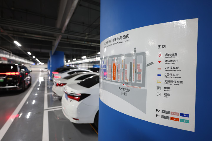 北京南站西地下P2停车场改造升级后,网约车实现“车位级”导航。新京报记者王贵彬摄